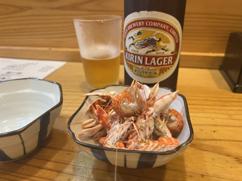 初めて見るビジュアル。どうやらオニテッポウエビで香川の観音寺あたりでは「かちえび」と呼ばれているらしい。この地域ではゆでたものをおやつ感覚で食べる文化があるようだ。女将さんもおっしゃっていたが、殻が柔らかいので食べるのに煩わしさがない。
