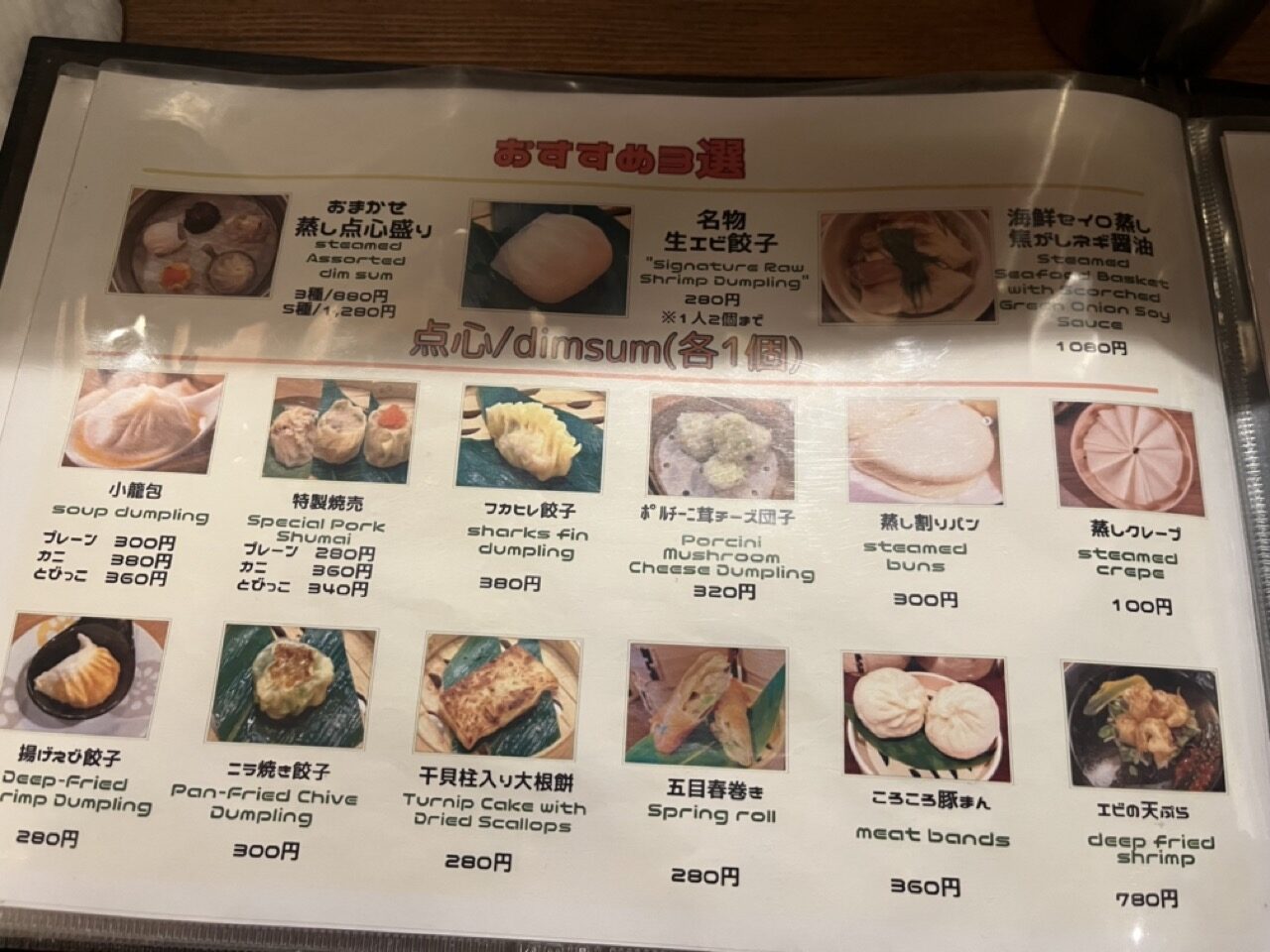 前菜は小皿での提供なので色々楽しみたい方にはぴったり。点心も基本は1個からの注文に対応しているのでおひとりさまにも優しいですね。