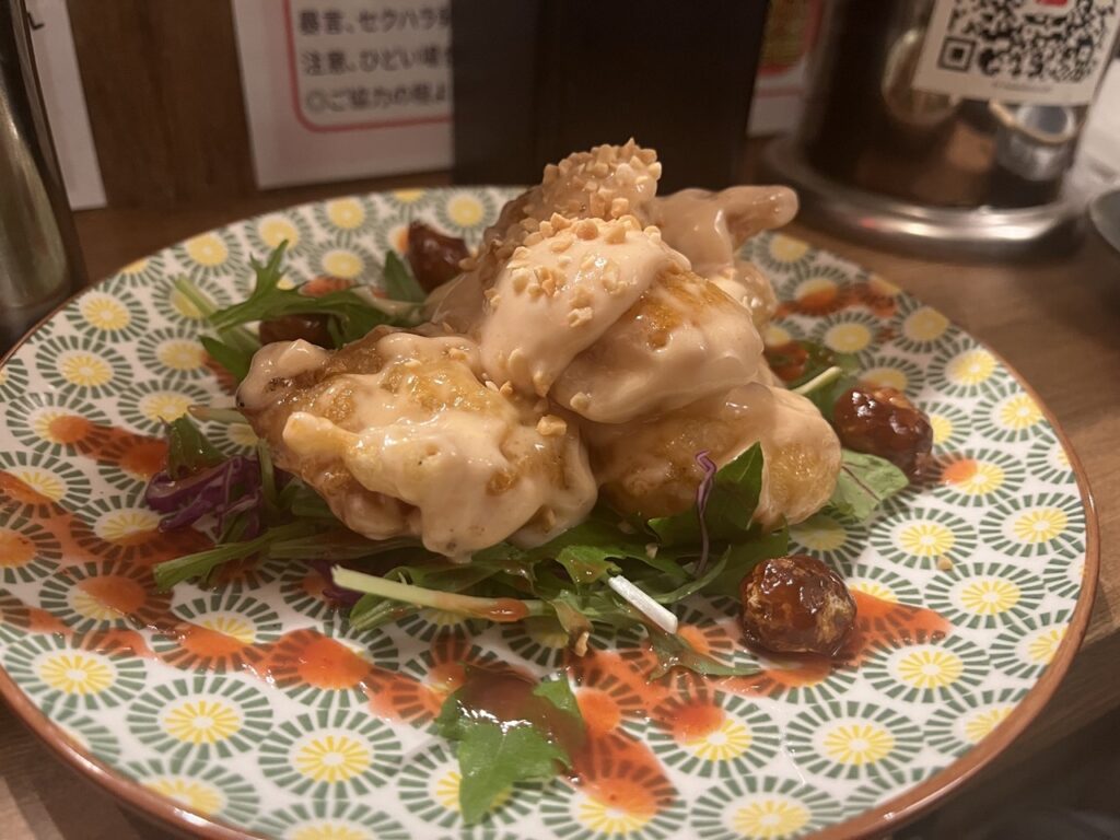こちらも注文率高かった「エビマヨ…¥1,080」。ビジュアルが魅惑的。衣もソースも油っぽくないのがよい。あっという間にお皿は空です。