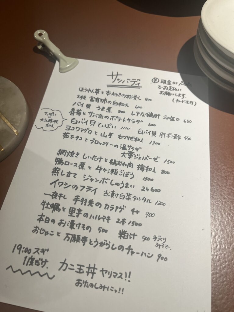 年の瀬のご挨拶で行きつけの「サンバディ」さんへ。京都から引っ越してめっきり伺う回数は減ってしまったけど、いつでも心にサンバディ。この日のメニューはこんな感じ。