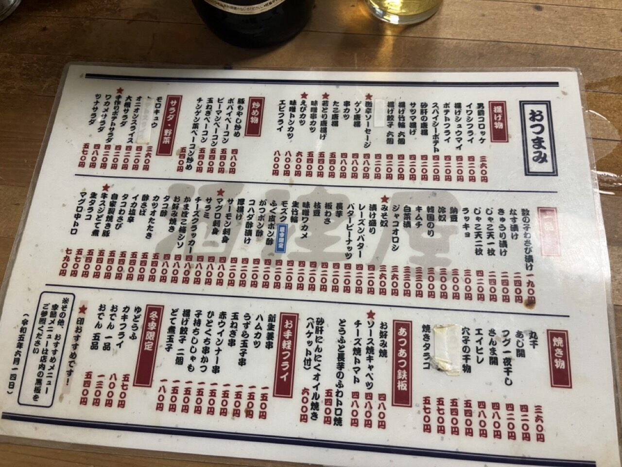 相変わらず写りが悪いですが、メニューはこないな感じ。この他にも本日のおすすめが店内の黒板に掲示されていました。スマホから注文できます!