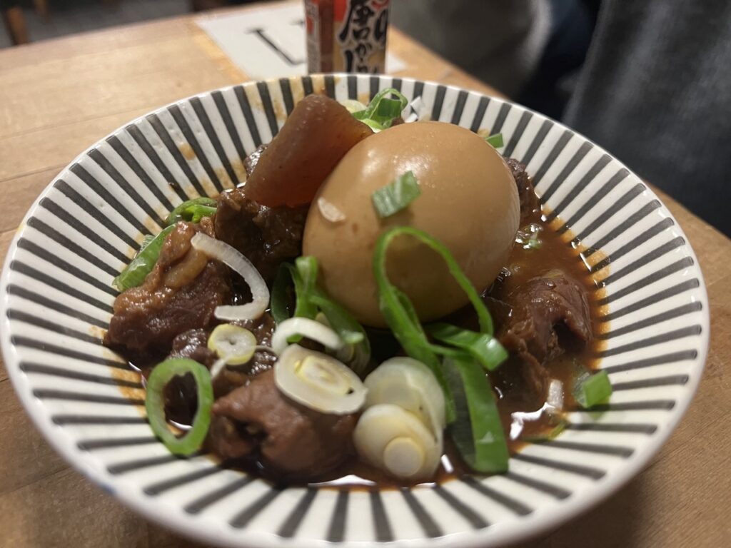 そこそこお腹は満足してきて、最後どうしようかな~って時に選んだのは「牛スジどて煮…¥540」。今年最後の名古屋だし、味噌っぽいもの食べとくか〜ってノリ(失礼)。お味がよく染み込んでました。